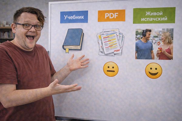 PDF дают базу, но настоящий испанский живёт в диалогах, эмоциях и ситуациях. Сериалы показывают, как люди перебивают друг друга, сокращают фразы, используют идиомы и сленг. Так ты начинаешь понимать и чувствовать язык, а не только читать 📺.