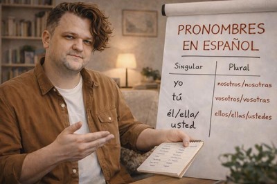 ΠΠ·ΠΎΠ±ΡΠ°ΠΆΠ΅Π½ΠΈΠ΅: TV screen with dramatic Spanish subtitles, notebook with vocabulary notes